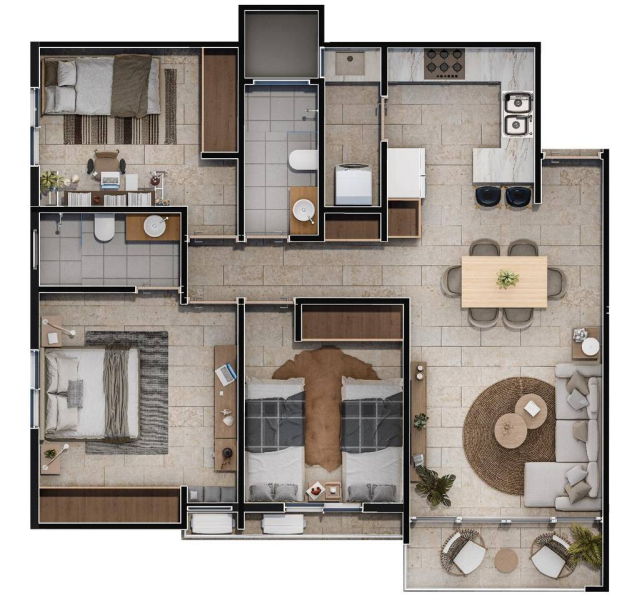 1, 2 y 3 habitaciones